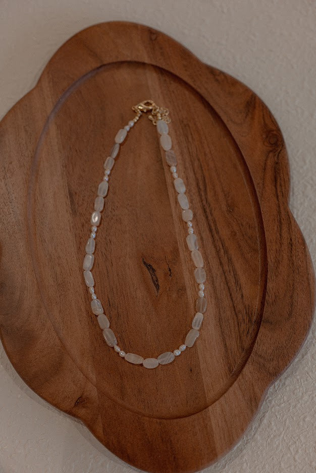 Materials: Peach Moonstone, Freshwater Pearls, Gold Filled Lobster Clasp and Extender Chain.