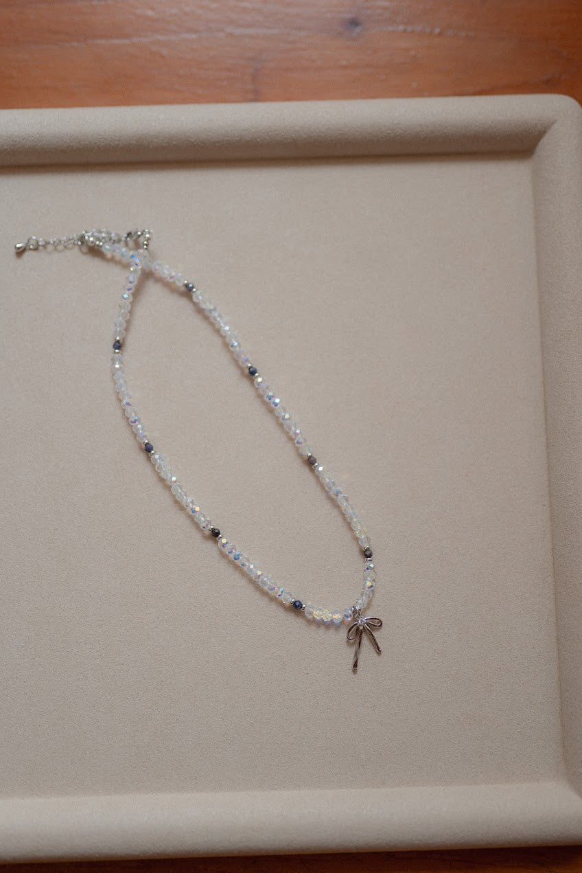 Materials: Crystal Stones with Silver Bow Charm and silver lobster clasp and extender chain.