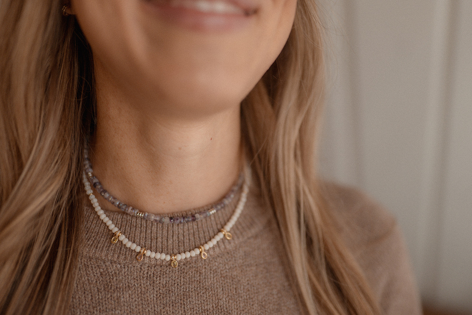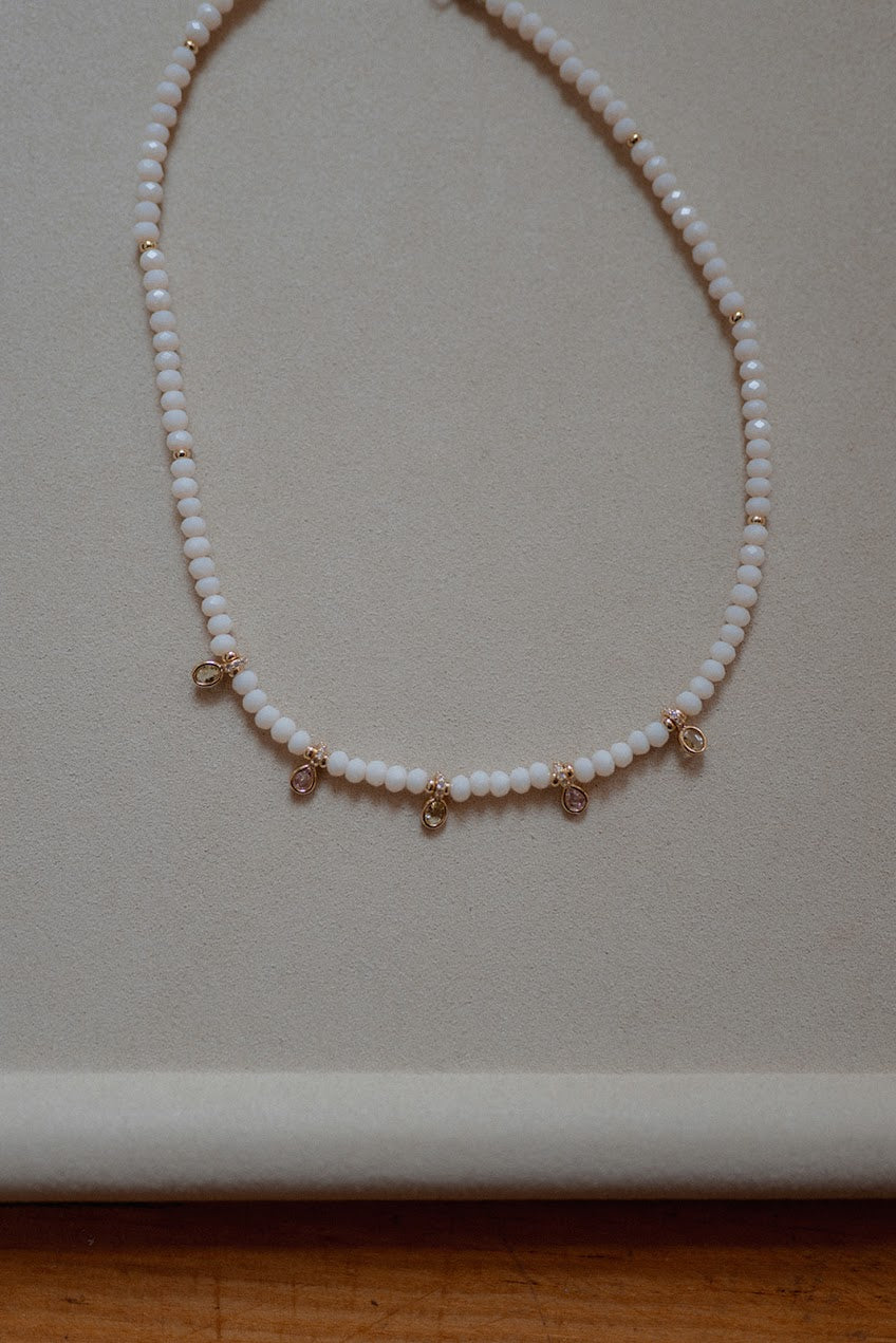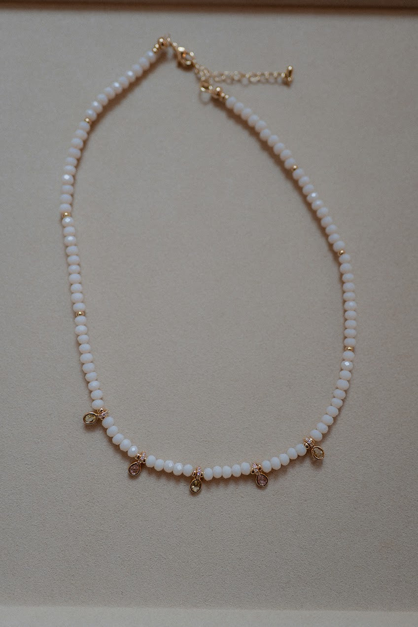 Materials: Crystal beads with gold filled pendant charms, gold filled lobster clasp and extender chain.