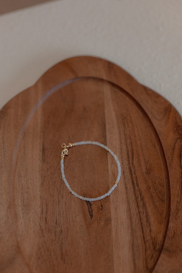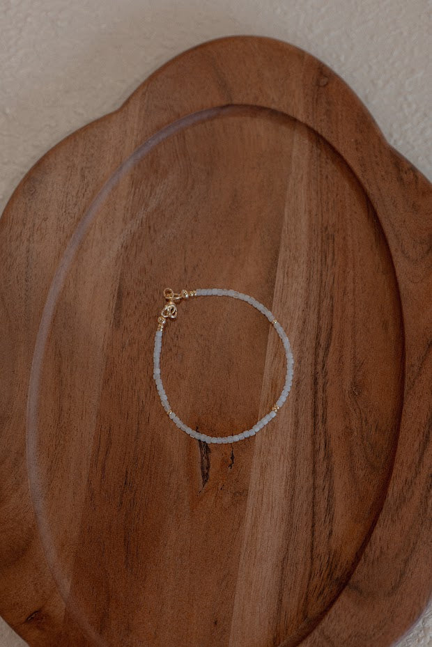 Materials: 2mm Moonstone, Gold Filled Spacers, Gold Filled Lobster Clasp and Jump Ring.