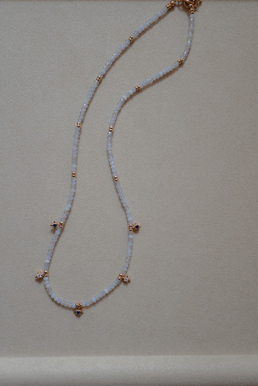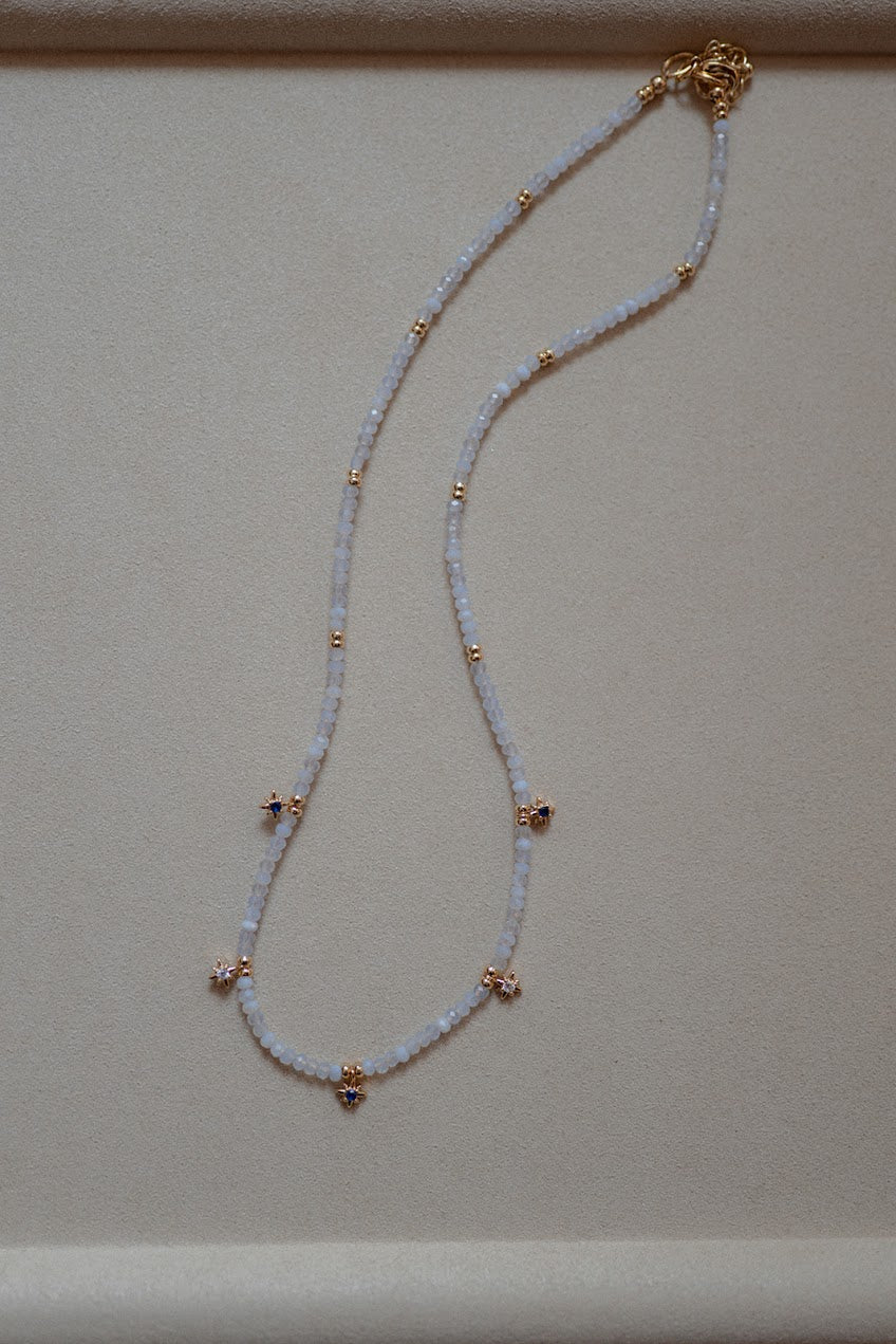 Materials: Moonstone Gems, gold filled charms, gold filled lobster clasp and extender chain.