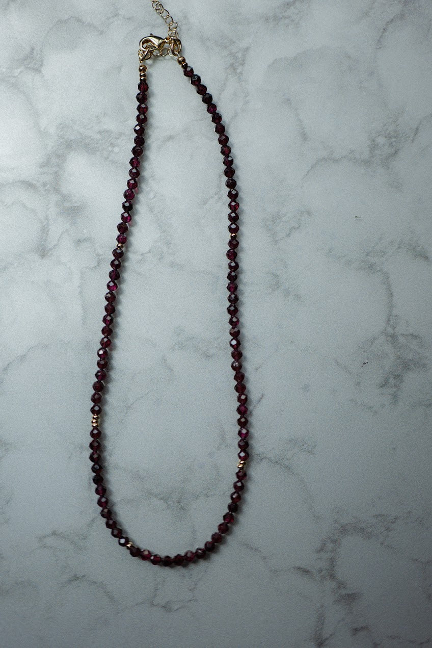 Materials: Two variations of garnet gemstone with gold filled spacers, gold filled lobster clasp and gold filled extender chain.