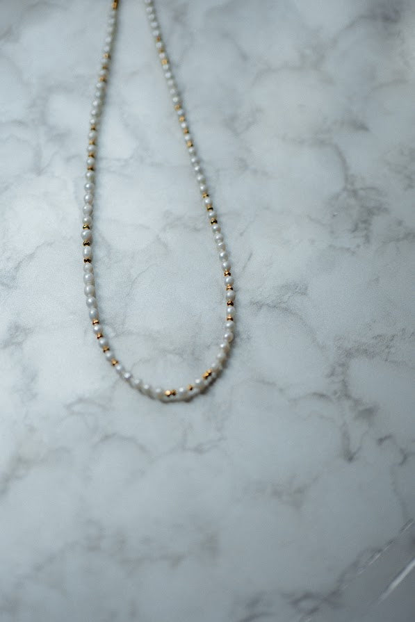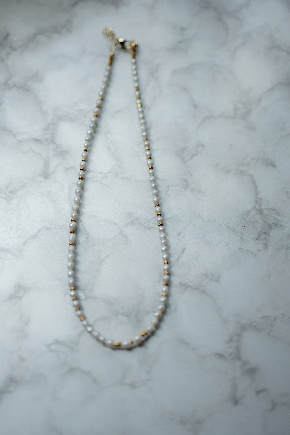 Materials: Freshwater pearls, gold filled spacers, gold filled lobster clasp and gold filled extender chain.