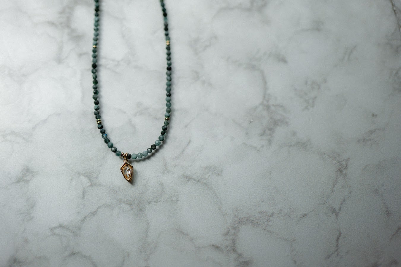 Materials: Emerald gemstone with gold filled pendant charm, gold filled spacers, gold filled lobster clasp and gold filled extender chain.