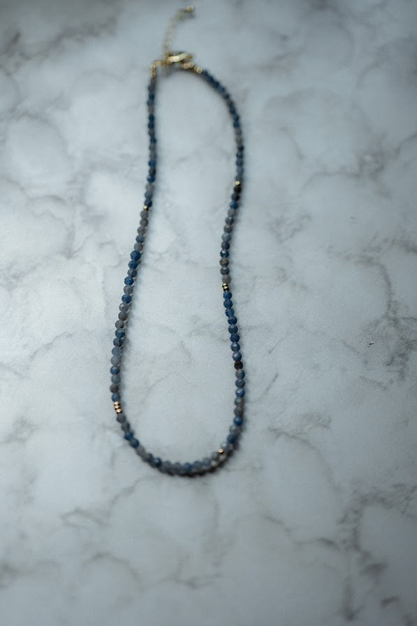 Materials: Sapphire gemstone with gold filled spacers, gold filled lobster clasp and gold filled extender chain.