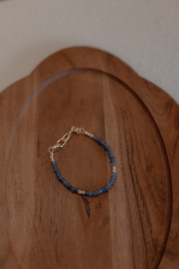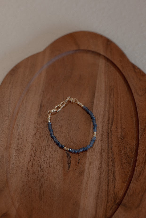 Materials: 2x4mm Navy Rondelle, Gold Filled Spacers, Gold Chunky Chain and Gold Filled Lobster Clasp