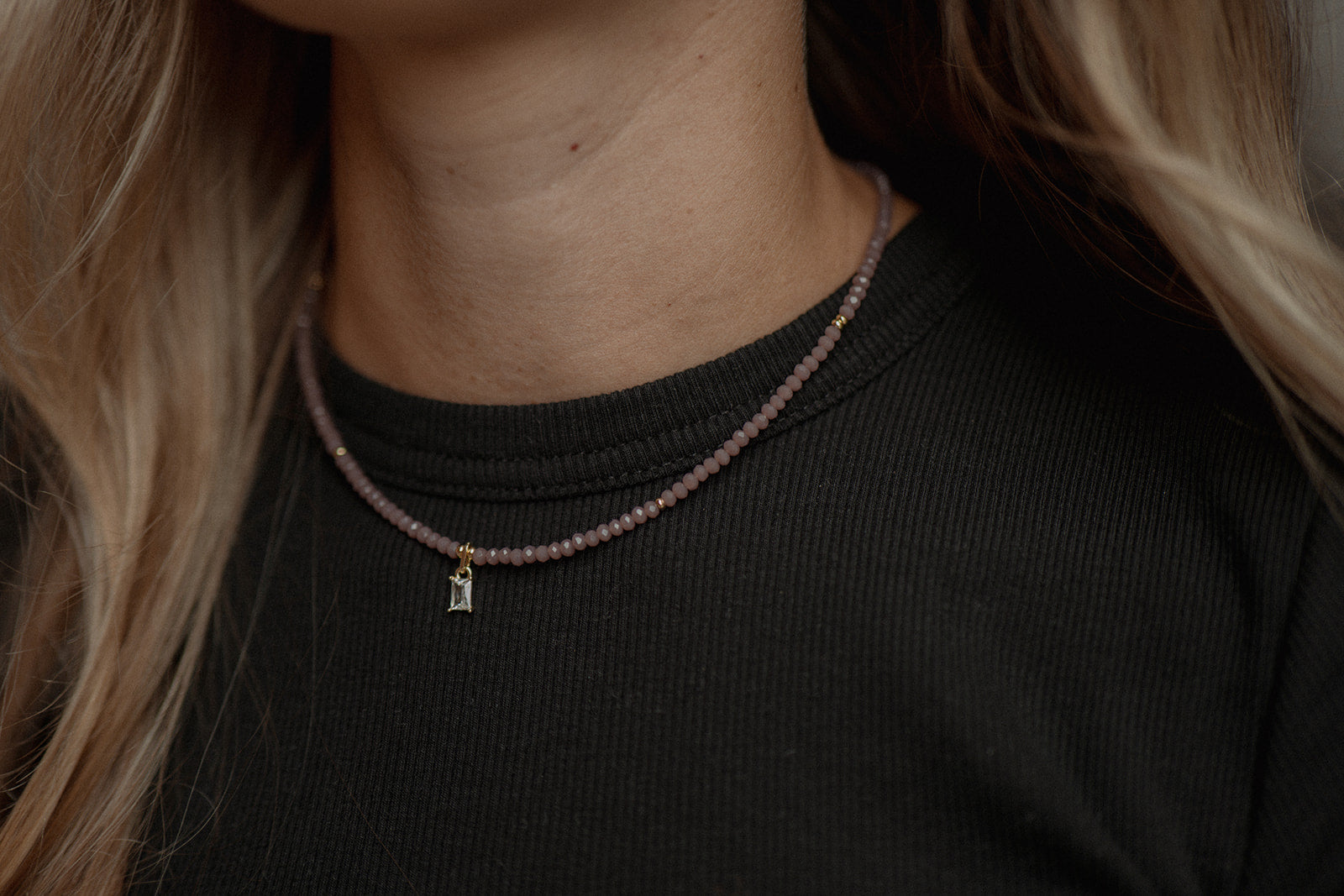 Materials: Light Purple Crystal Beads, Cubic Zirconia Emerald Cut Charm, Gold Filled Lobster Clasp and Extender Chain