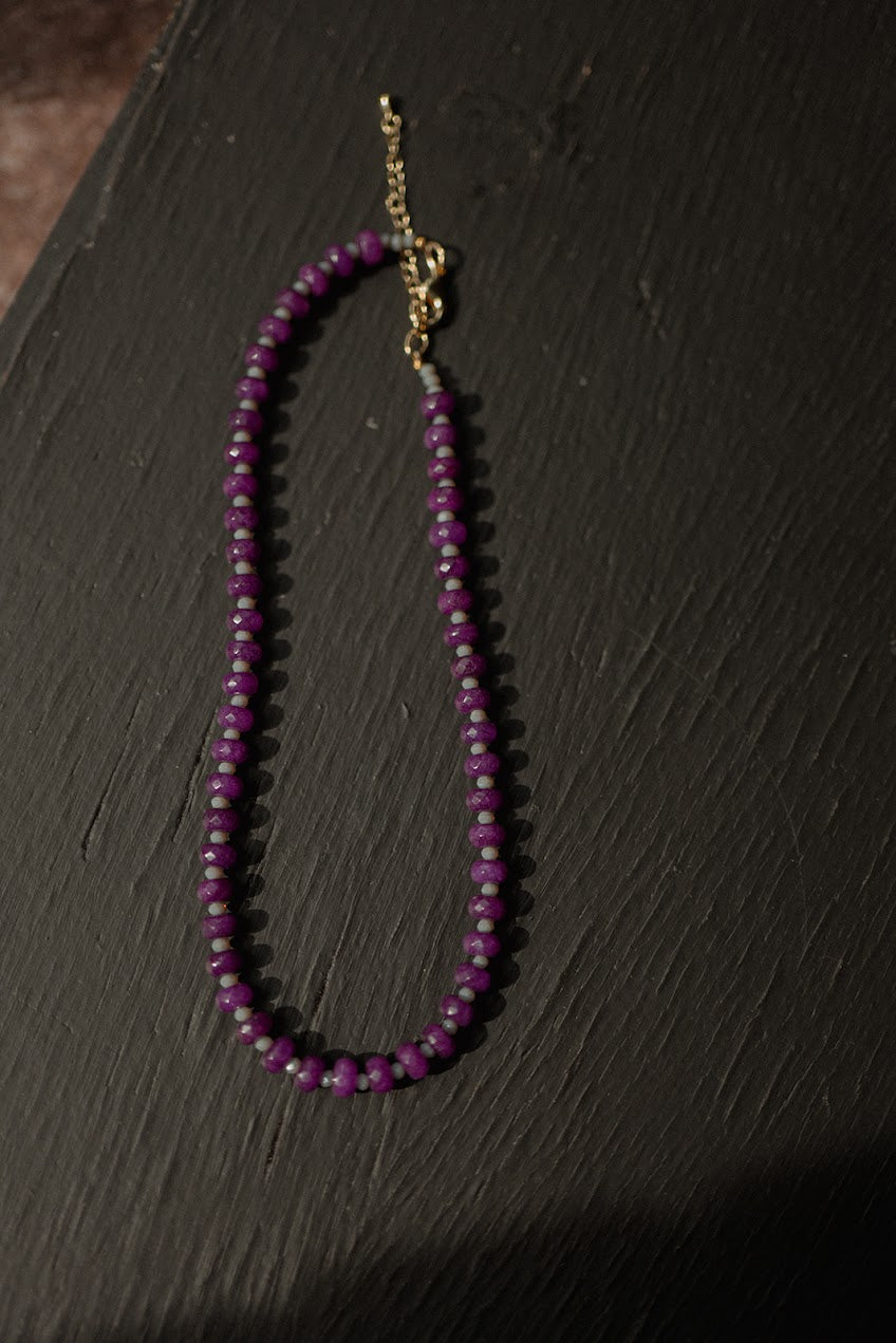 Materials: Lavender Crystal Beads with gold filled spacers, gold filled lobster clasp and gold filled extender chain.