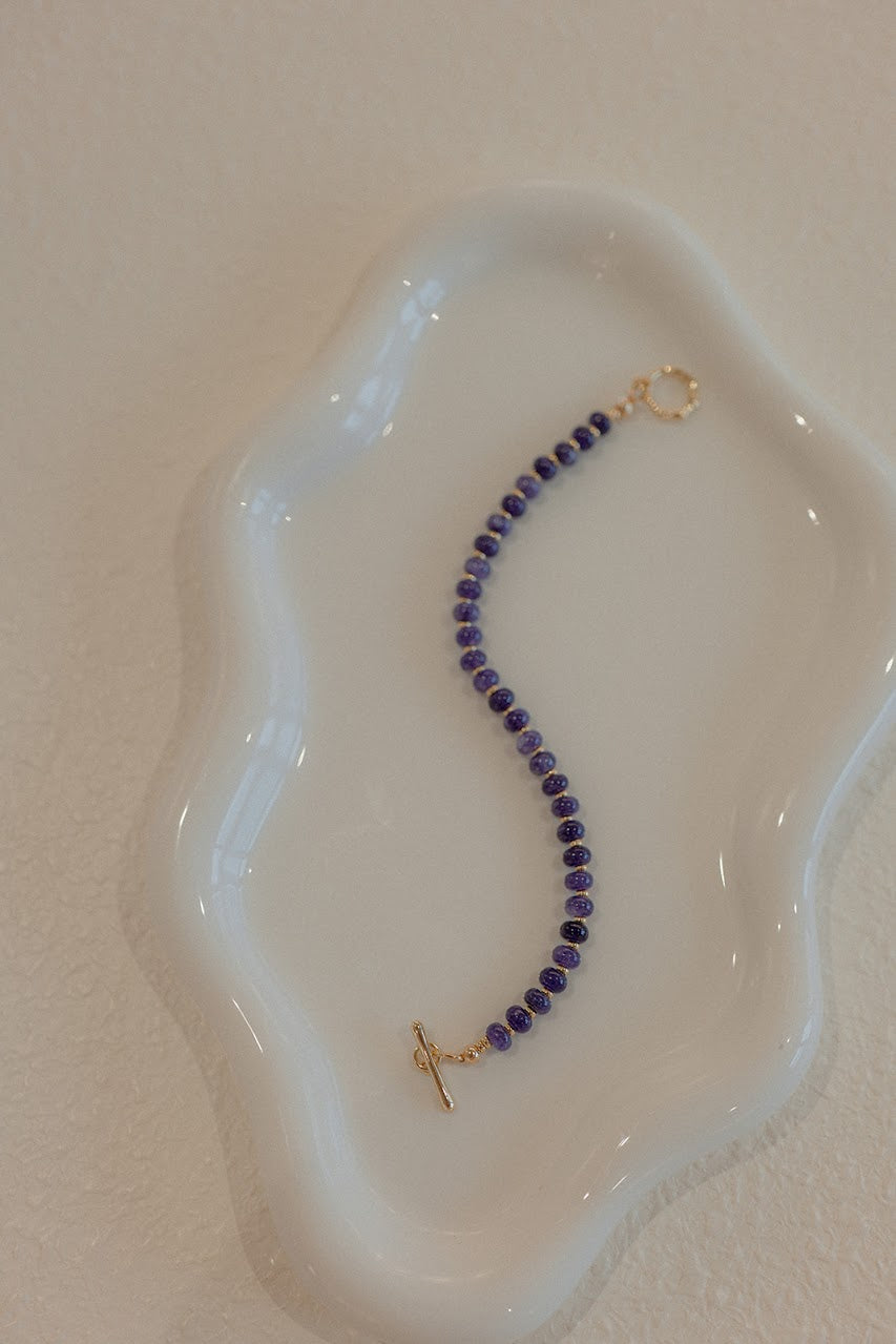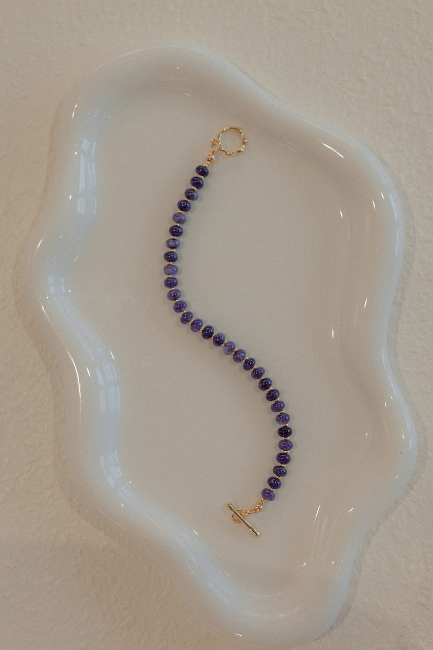 Materials: Dark Purple Rondelle Beads, Gold Filled Spacers and Gold Filled Toggle