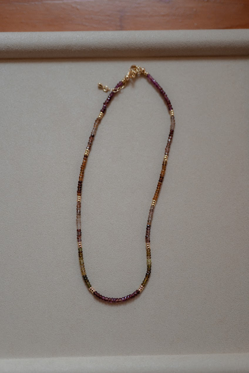 Materials: Tundra sapphire gemstones with gold filled lobster clasp and extender chain.